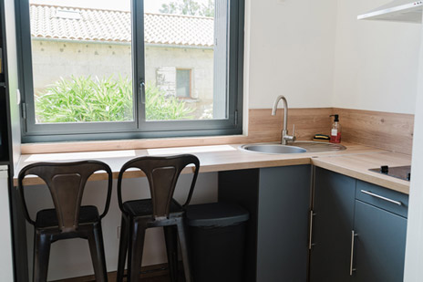 The contemporary-style Studio Ambassadeur, approx. 25m2, 160*200 bed, bathroom with shower and WC, flat-screen TV, free Wi-Fi access and fully-equipped kitchenette.