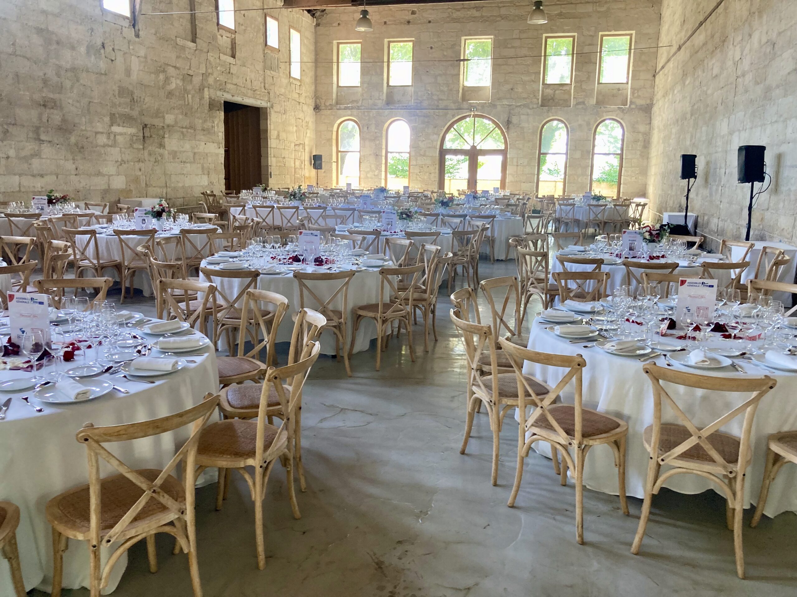 La majestueuse Salle des Vendangeurs de 300m2 a conservé ses murs en pierre